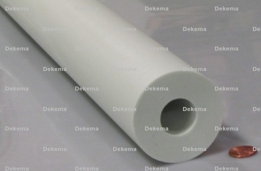 NEMA grade G7 Glass-Cloth Reinforced Silicone -- natural color is typically cream to white. Composed of a continuous glass woven clothe base impregnated with a silicone resin binder, this grade has excellent heat and arc resistance. (Silicone thermosetting resins are among the best of all polymer materials in resistance to temperature. Hence, silicone is broadly used for high temperature electronic applications requiring low electrical losses. Silicone isn't as strong as epoxies and phenolics upon aging at lower temperatures but is stronger upon aging over 400°F.) G7 has extremely good dielectric loss properties under dry conditions and good electrical properties under humid conditions, although the percentage of change is high.