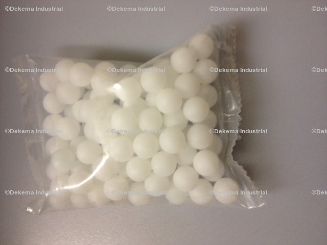 High Density Polyethylene spheres float on surface of liquid in open tank and thereby greatly reduce the exposed liquid surface area - up to 90%. Dramatically diminish objectionable fumes and odors. Blanket of spheres also insulates heated liquid reducing evaporation and heat requirements. Ideal for plating tanks and similar open tank installations where the liquid surface can be covered with a blanket of spheres without impeding access to the tank for process purposes. Spheres are hollow and will float on any liquid. Polypropylene, non-toxic and able to withstand continuous working temperatures of 110°C (230°F) Polypropylene is suitable for use in most known chemicals. High Density Polyethylene generally suitable as above but with a continuous working temperature limitation of 80°C. (176°F) softening point about 110°C (230°F). High density polyethylene has better chemical resistance to certain compounds like oil, and other hydro-carbons. Also less stress cracking at low temperatures than polypropylene. Color white translucent. All sizes are blow molded.